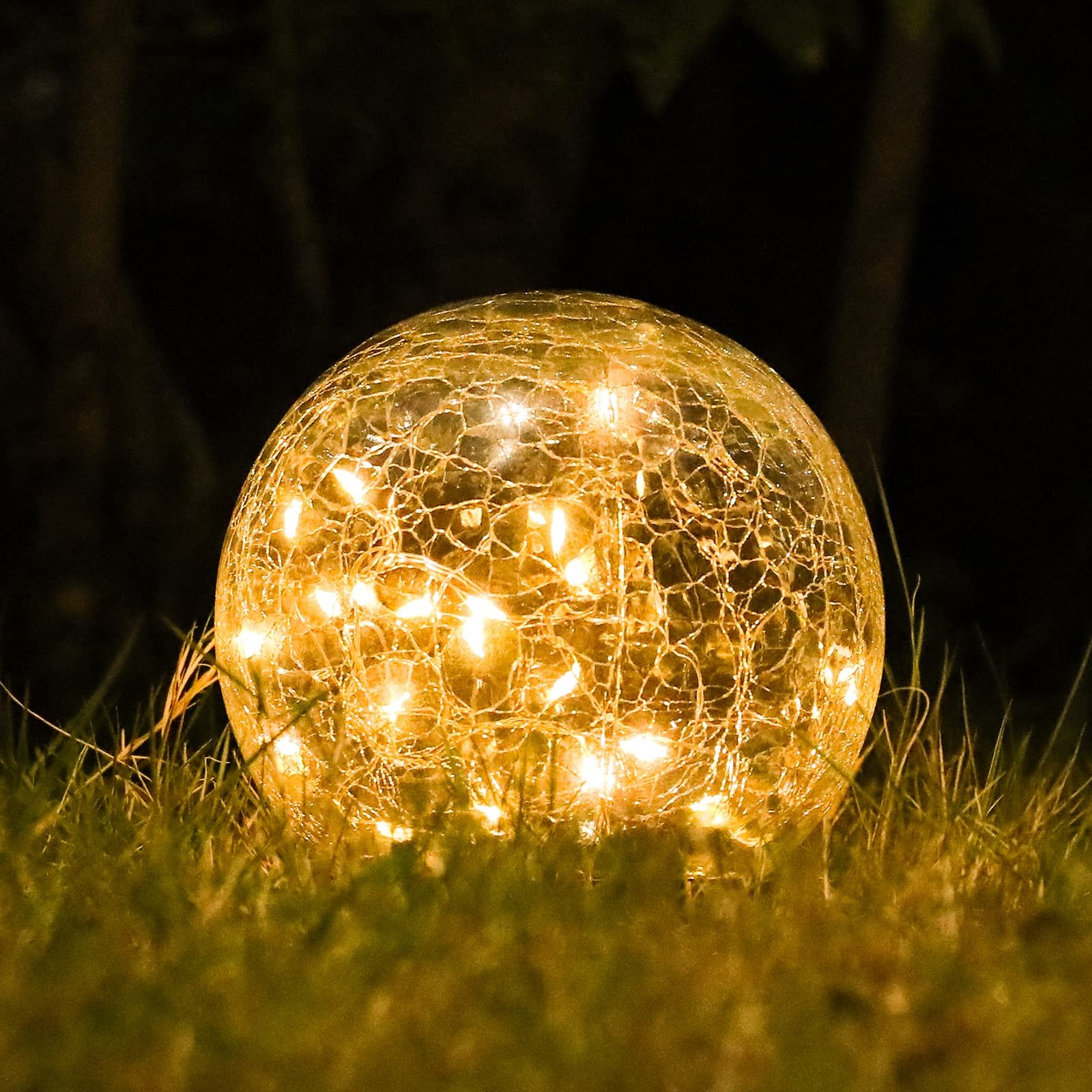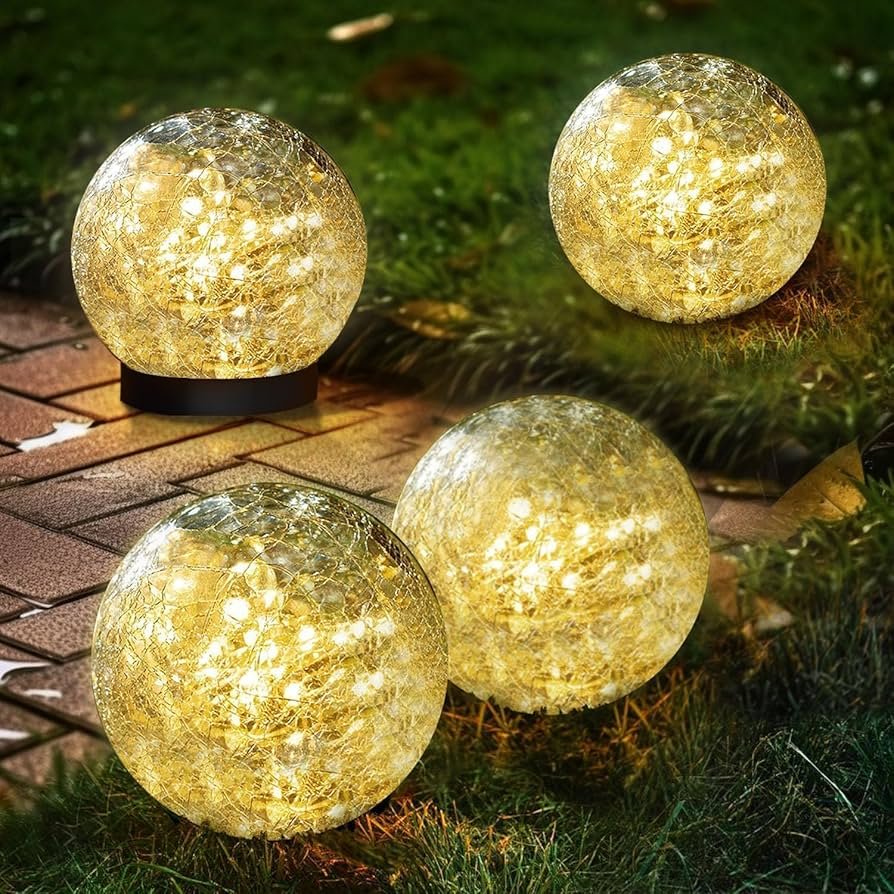 Elevate your outdoor décor with the JKIMK Solar Globe Lights Outdoor Waterproof. These elegant cracked-glass orbs glow with a soft, warm LED light while charging via solar energy during the day. Featuring automatic dusk-to-dawn operation and weather-resistant construction, they pair style with functionality—click now to bring a magical ambiance to your garden.