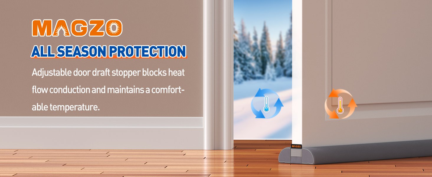 Keep your home comfortable and energy-efficient with the MAGZO 32-Inch Adjustable Door Draft Stopper. Designed to fit doors 26"–32" and seal gaps up to 1.7", it blocks drafts, dust, noise, and light with ease. Its durable plush polyester cover and customizable foam rods ensure a snug, long-lasting fit—install effortlessly and enjoy a quieter, cozier space today.