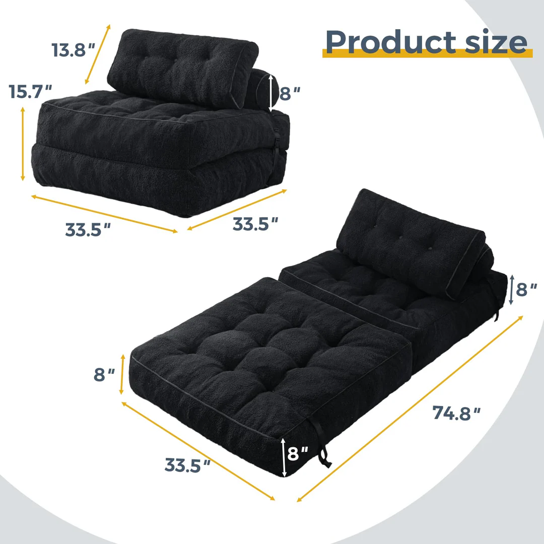 - Functions: 4-in-1 design (sofa, bed, lounger, floor mattress)