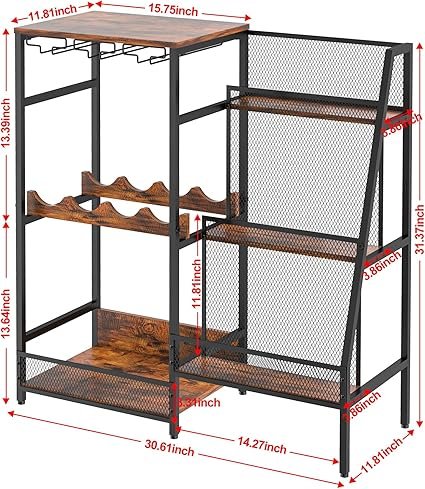 Add style and function to your home bar with this versatile 3-tier trapezoidal liquor stand and mini bar table. Featuring spacious shelves with safety fences, built-in glass holders, and a wine rack, it’s perfect for organizing whiskey, wine, and spirits in one elegant display. Its vintage wood finish and sturdy metal frame make it a durable and stylish choice—ideal for entertaining or showcasing your collection. Discover it today for your home bar setup.